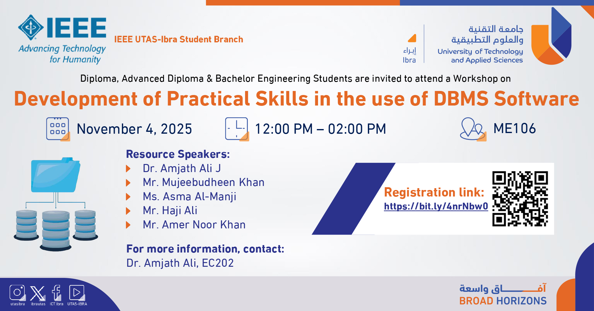Thursday, October 30, 2025 / Categories: Announcements, Engineering Development of Practical Skills in the use of DBMS Software College of Engineering and Technology Previous Article Academic Integrity Poster and Video Presentation Competition Next Article Al & loT Workshop Programming, Interfacing & Application Print 20 Rate this article: No rating