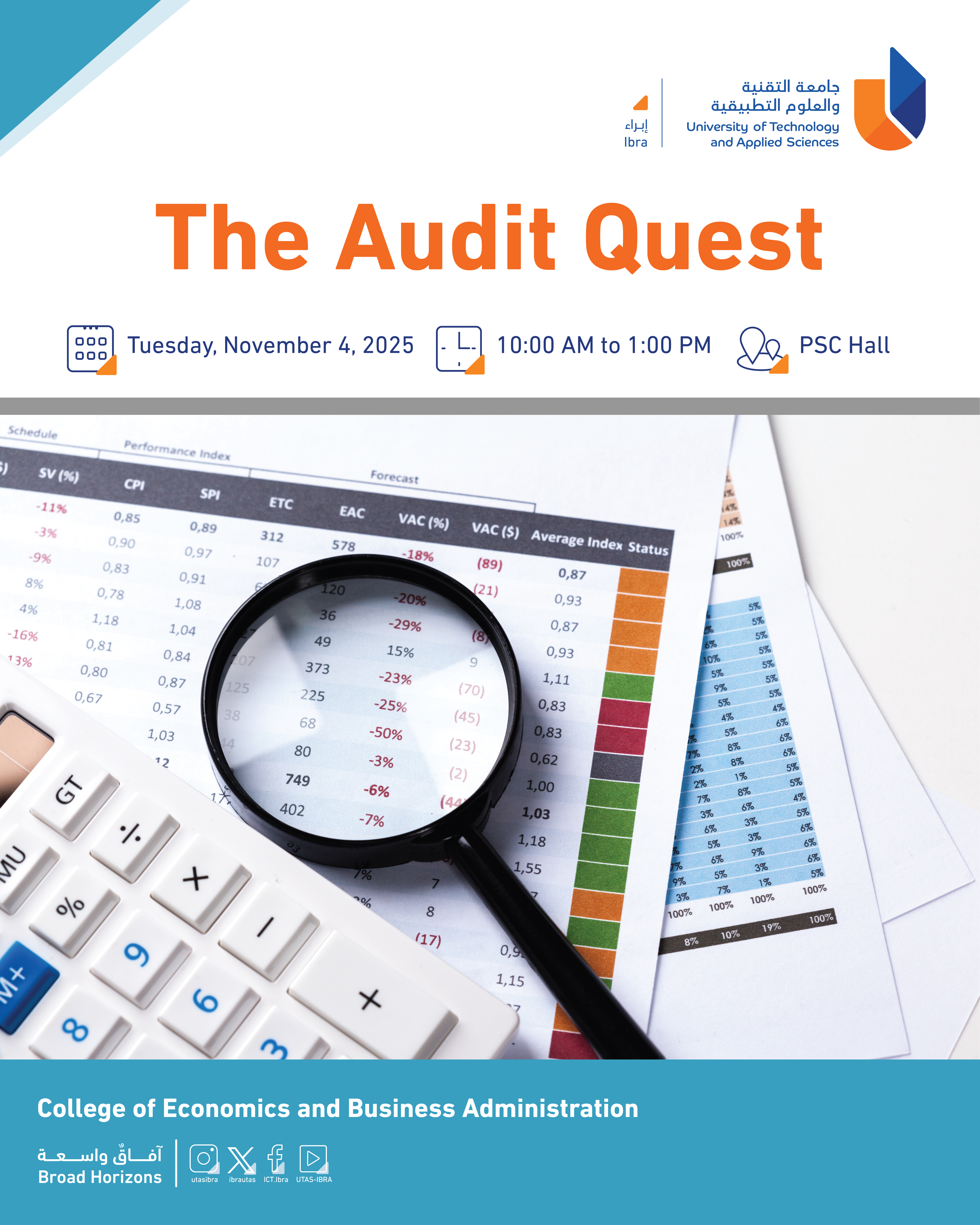Sunday, November 2, 2025 / Categories: Announcements, Business Studies The Audit Quest College of Economics and Business Administration Previous Article Al & loT Workshop Programming, Interfacing & Application Next Article Material Science Fundamental Understanding Heat Treatment and Property Development Print 16 Rate this article: No rating