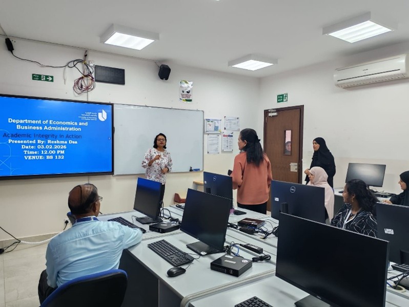 The Staff Development Committee of the Department of Economics and Business Administration organized an engaging workshop titled “Academic Integrity in Action: SnapTalks” on February 3, 2026, at 12 PM at BS132. The workshop aimed to strengthen work-related skills and critical thinking skills, which are essential for navigating academic integrity challenges in higher education.