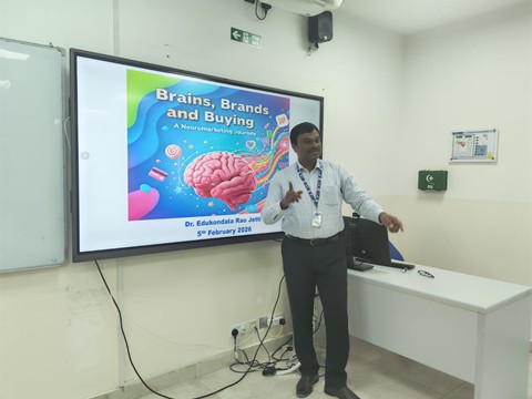 “How neuromarketing can be harnessed to build stronger brands and influence consumer behavior effectively?” This key question was addressed during the workshop organized by the Department of Economics and Business Administration entitled “Brains, Brands, and Buying: A Neuromarketing Journey” on February 4, 2026, at 1:00 PM in BS133. The session was facilitated by Dr. Edukondala Rao Jetti, who provided participants with an in-depth exploration of neuromarketing and its role in understanding consumer behavior.