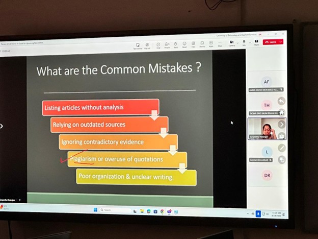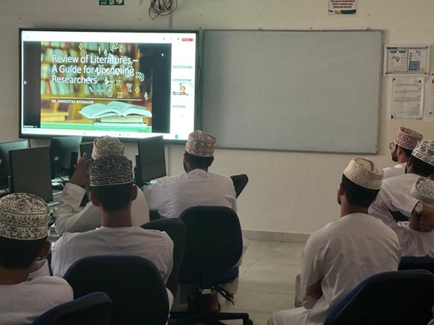 The session was conducted by Dr. Sangeetha Natarajan Senior Lecturer, College of Economics and Business Administration, University of Technology and Applied Sciences – Nizwa, who shared her expertise on the importance and techniques of conducting a systematic review of literature in research.