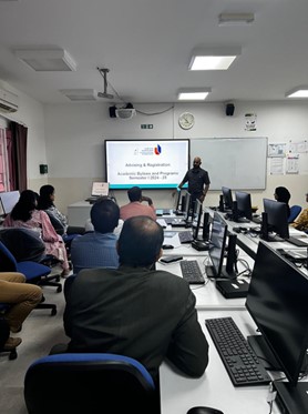 Mr. Abdullah Thanseer, department’s registrar, presented the updated academic bylaws and programs. He revisited the applicable rules and regulations of Bylaws and Degree Audit for both version 4 and 5 students. He underscored the importance of providing correct advice to students following strict compliance with UTAS policies and procedures.