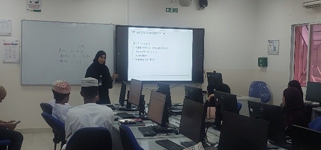 Mrs. Muzna AL-Maqbali and Mrs. Tharaya Al Harthi also explored the realm of Human Resource Management (HRM), discussing its employment potential and the competencies required for success in this specialization. They further highlighted opportunities for advanced studies in HRM, which is crucial because it allows students to deepen their expertise and enhance their career prospects.