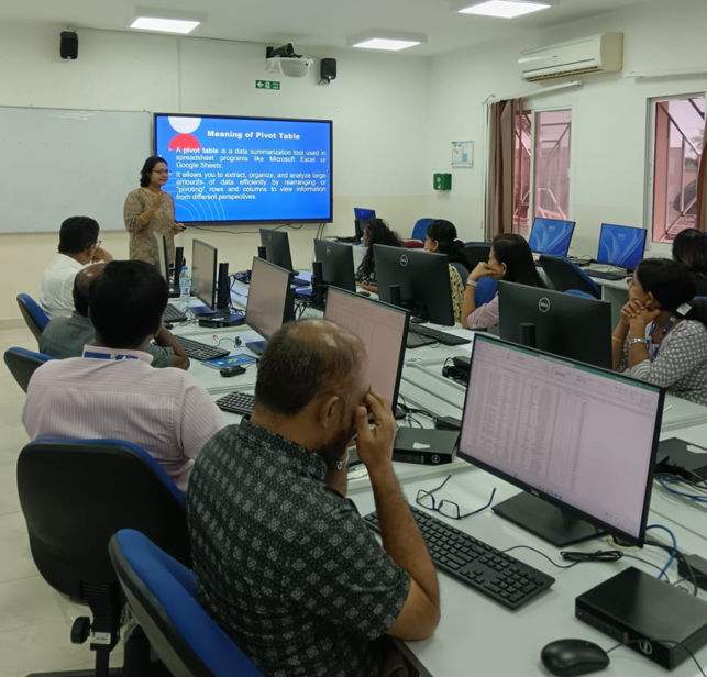 The hands-on training session conducted by Dr. Reshma Delfine Dsa, HOS – HR, allowed participants to create, design, analyze and interpret large data sets. She highlighted the power of Microsoft Excel’s pivot feature in transforming approaches to data-driven decisions. Participants not only learned the technical skills to create and customize pivot tables but also developed the ability to analyze data more effectively and efficiently.