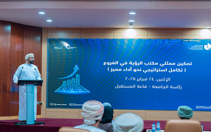 نظمت جامعة التقنية والعلوم التطبيقية متمثلة في مكتب متابعة تنفيذ رؤية عمان 2040، ورشة تطويرية بعنوان "تكامل استراتيجي نحو أداء متميز" وذلك لتمكين ممثلي مكتب رؤية عمان 2040 بالجامعة من تحقيق مستهدفات الرؤية وذلك في مبنى الرئاسة. استهدفت الورشة ممثلي مكتب الرؤية من مختلف فروع الجامعة من الأكاديمين والإداريين والعاملين في مجال التخطيط الاستراتيجي وإدارة الأداء، والمشرفين على تنفيذ البرامج والمبادرات بالجامعة والمرتبطة بالرؤية إلى جانب عدد من الحضور من مكتب وحدة متابعة تنفيذ رؤية عمان 2040.
