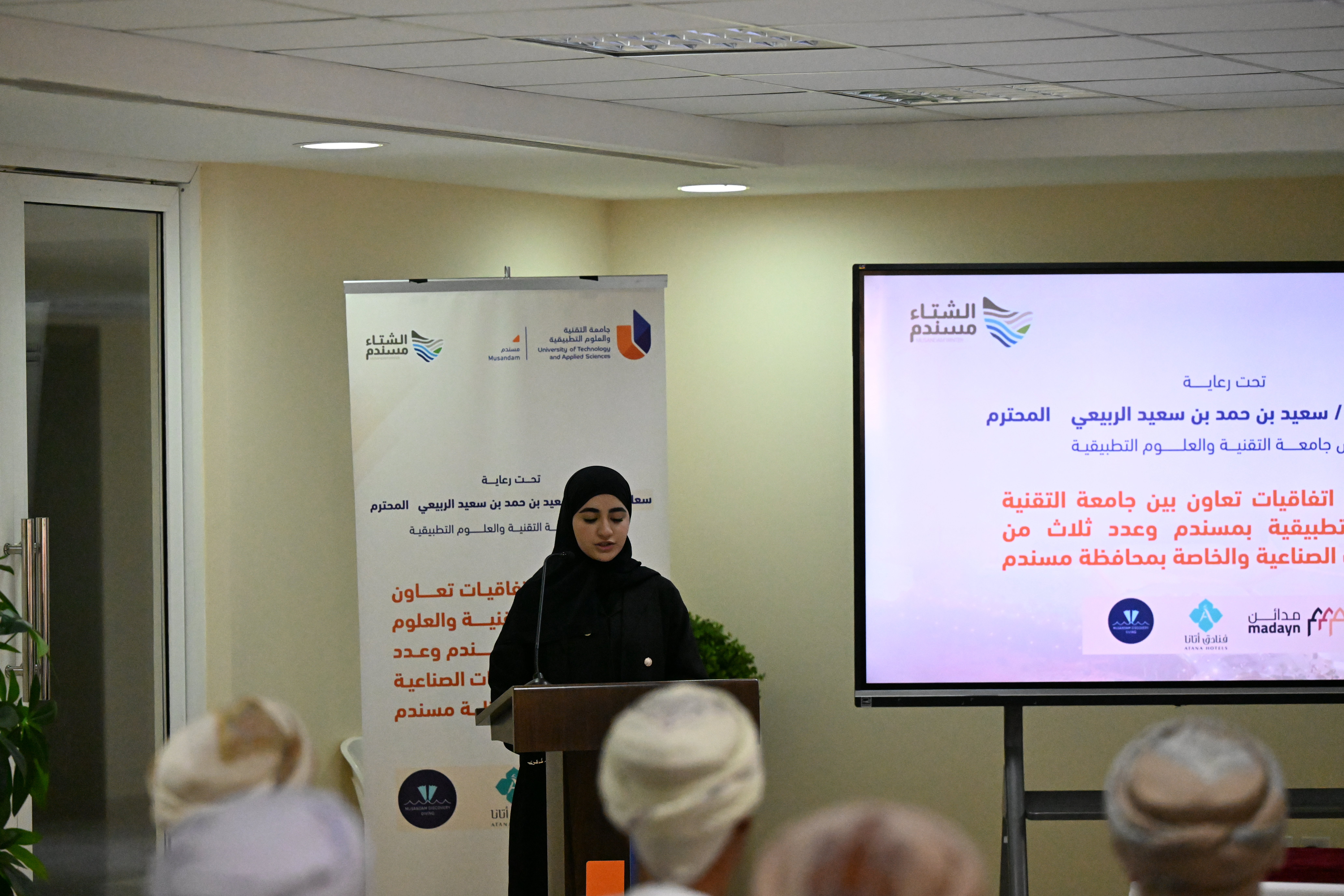 As part of strengthening strategic partnerships and supporting sustainable development in Musandam Governorate, the University of Technology and Applied Sciences in Musandam has signed three cooperation agreements with several industrial and private institutions in the governorate, with the aim of enhancing partnership and integration in a number of key areas.