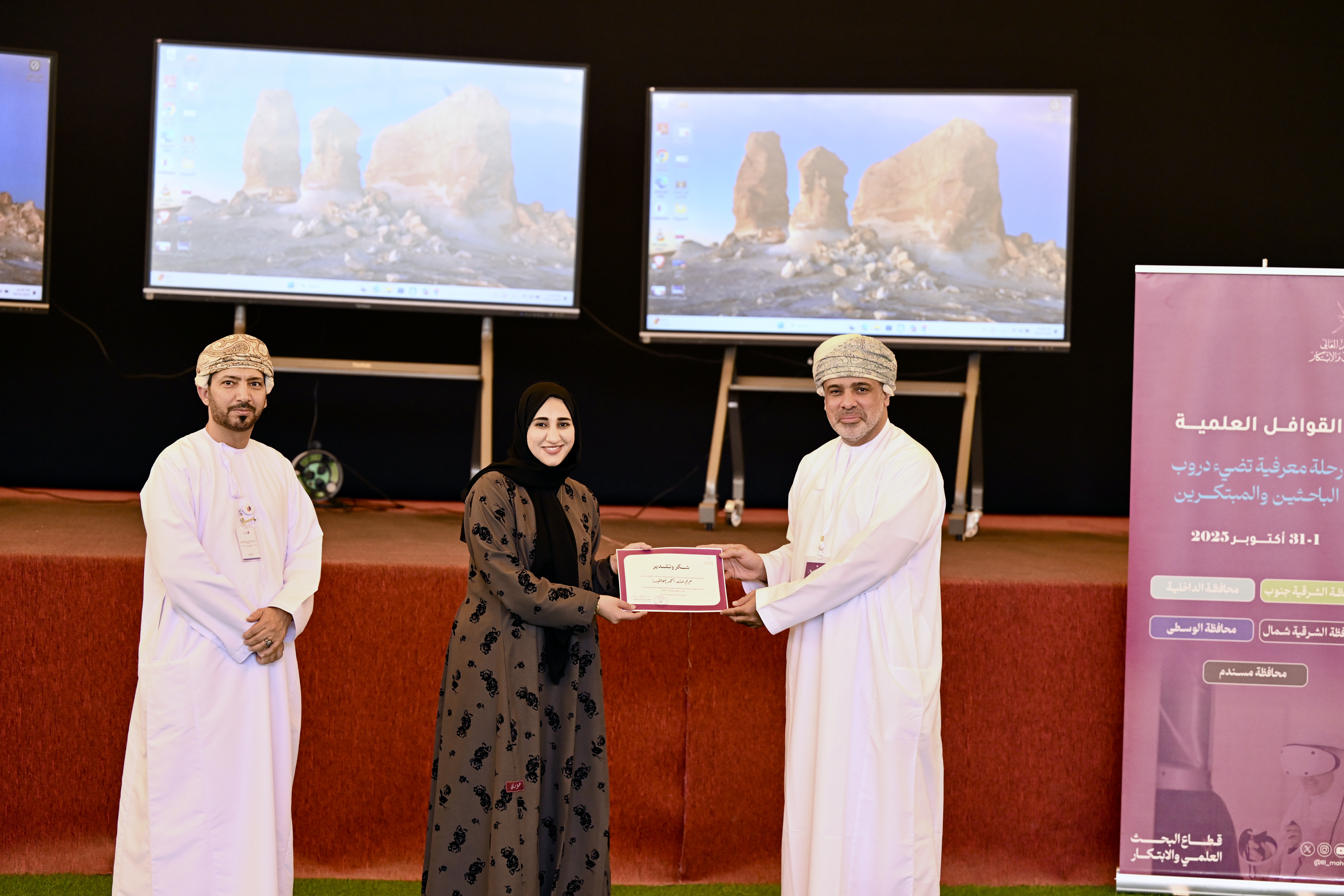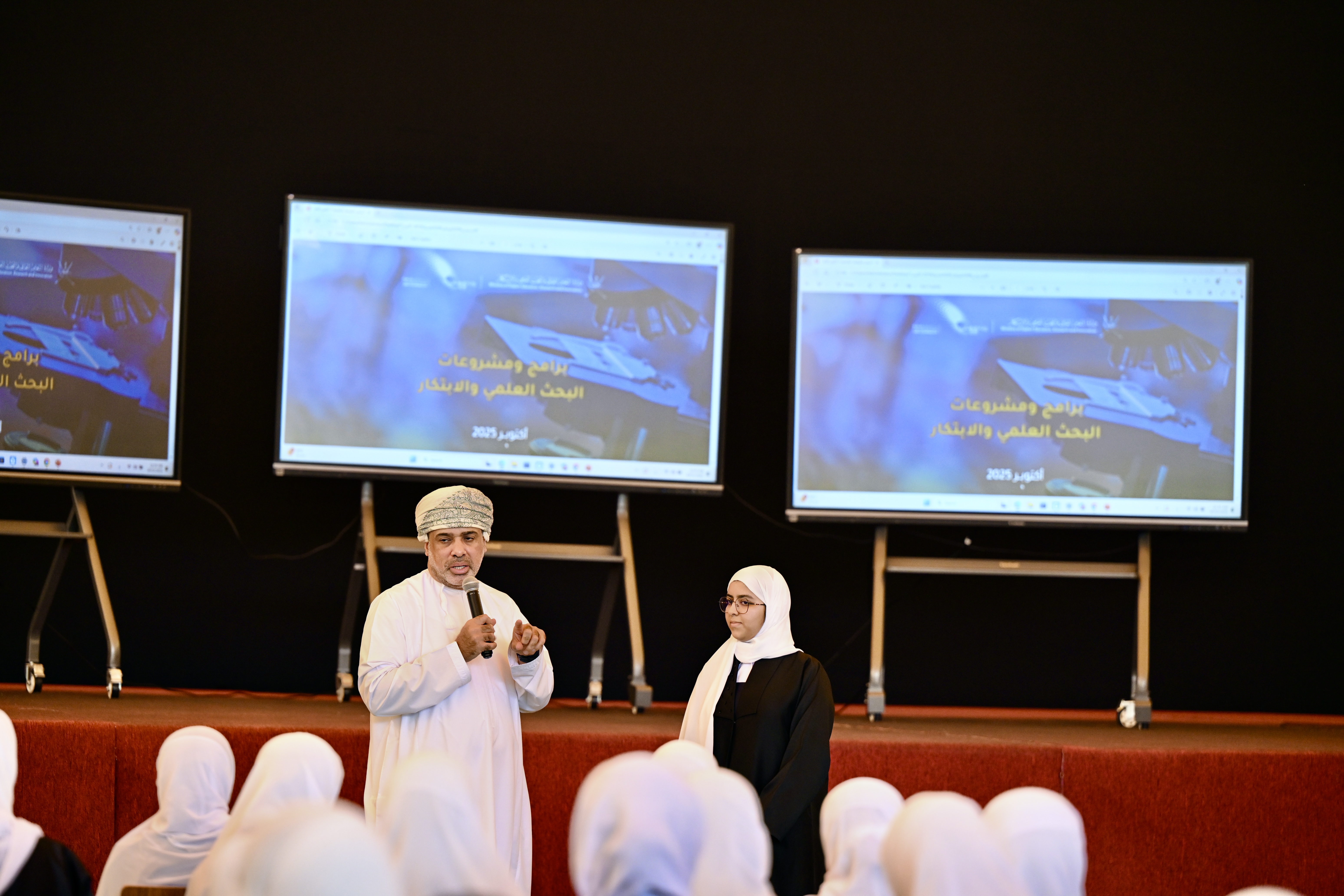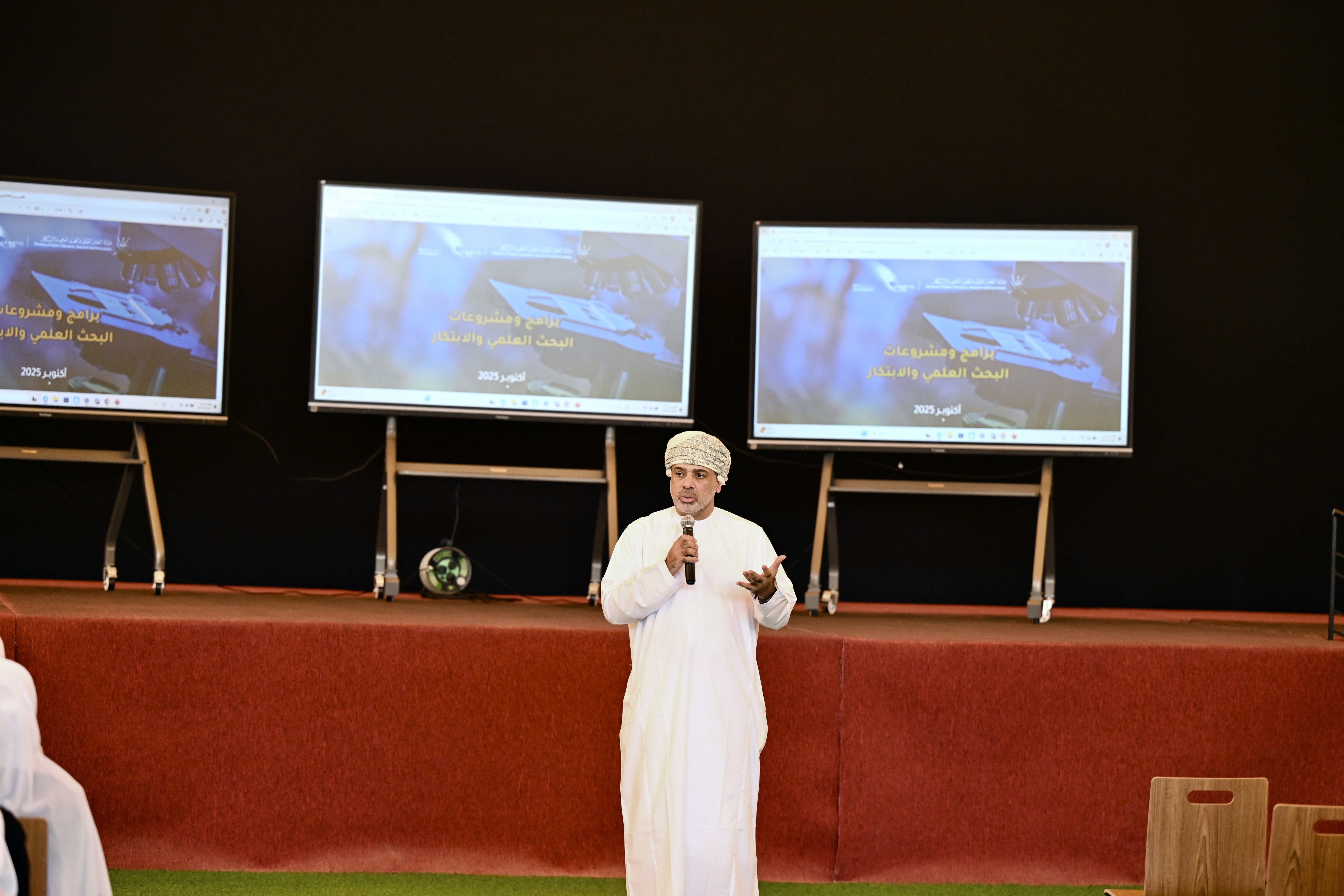 The event included a presentation of key research funding programs and institutional support, along with showcasing an innovative success story by student Thuraya bint Nasser Al Hinai titled “Desert Biofuel,” serving as an inspiring example of the university’s outputs.