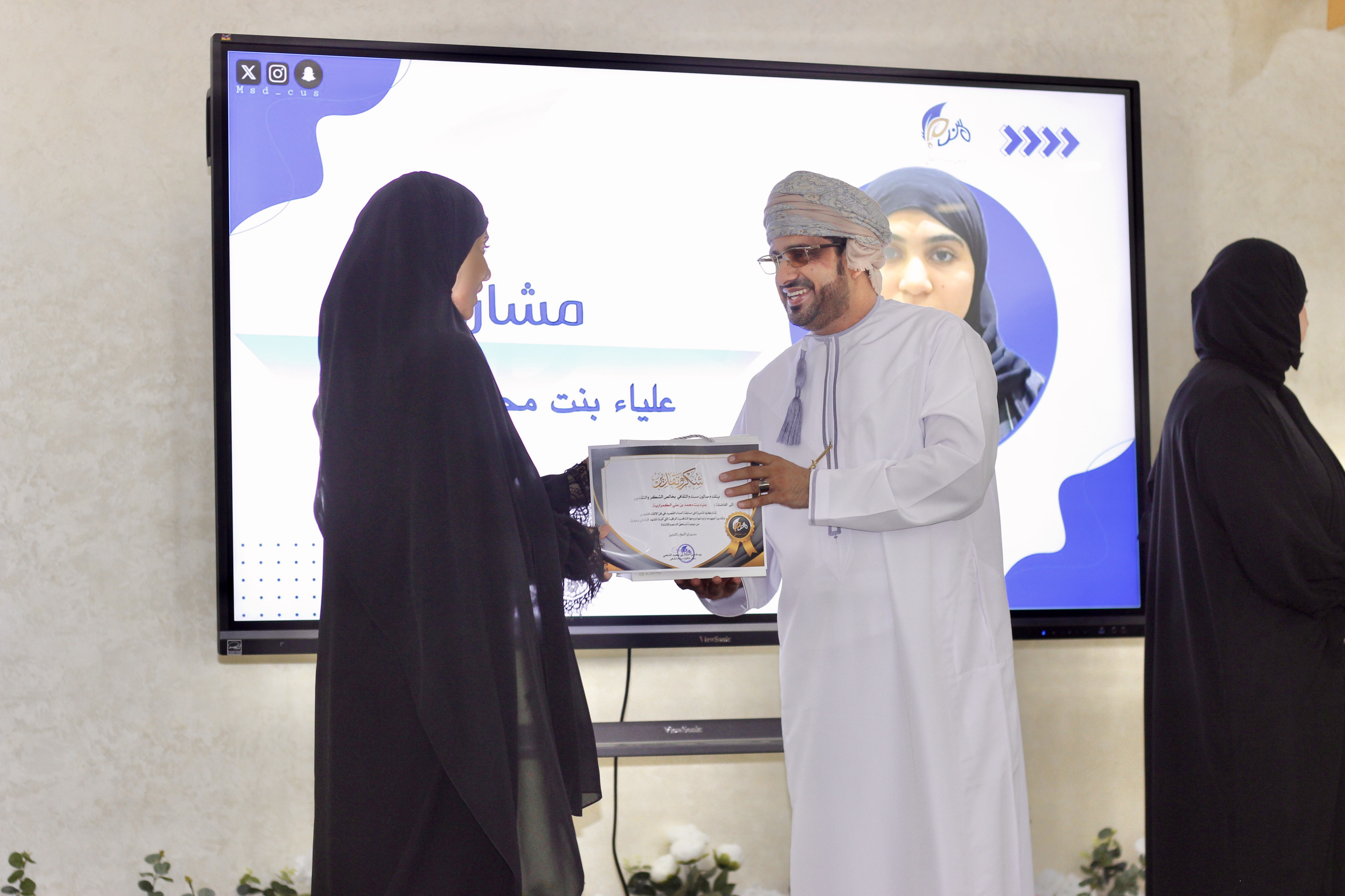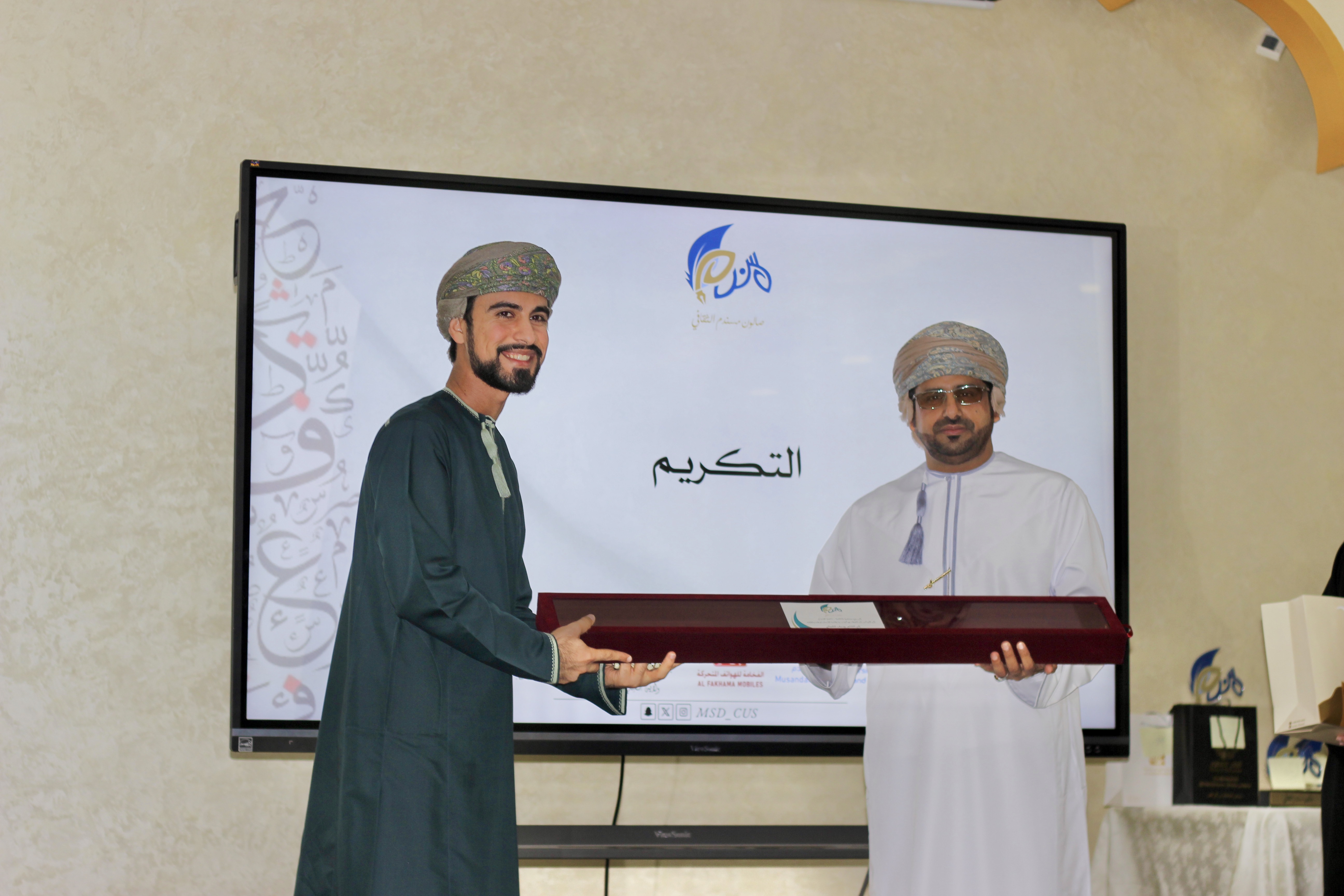 A glimpse of the participation of Dr. Ahmed bin Saeed Al-Shahri, Assistant Vice-Chancellor at the University of Technology and Applied Sciences – Musandam Branch, in sponsoring the final ceremony of the “Asda’ Al-Qaseed” Poetry Competition, held at the Musandam Cultural Salon.