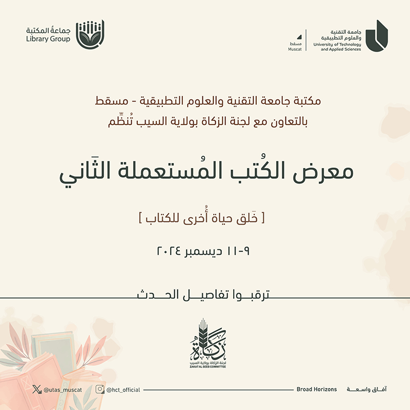 Tuesday, November 26, 2024 / Categories: Announcements, Educational Technology Center قريبا.. معرض الكتب المستعملة الثاني Previous Article Artificial Intelligence in Higher Education Next Article How to Create Opportunities: Unlocking the Potential within YOU! Print 440
