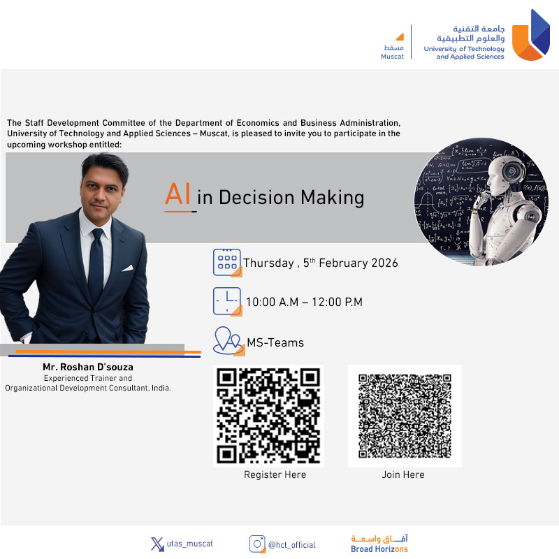 Thursday, January 29, 2026 / Categories: Announcements, Business Studies AI in Decision Making Register Here Join Here Previous Article Discover the basics behind “Educational Video Making” Print 2
