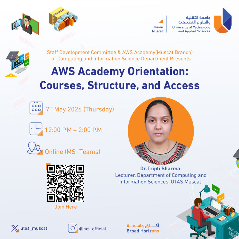 Monday, April 27, 2026 / Categories: Information Technology AWS Academy Orientation: Courses, Structure, and Access Join Here Previous Article كن شريكا بالإرتقاء بمستوى خدمات المكتبة Next Article Panel discussion in Hydrogen Energy: Policy and Marketing perspectives Print 29