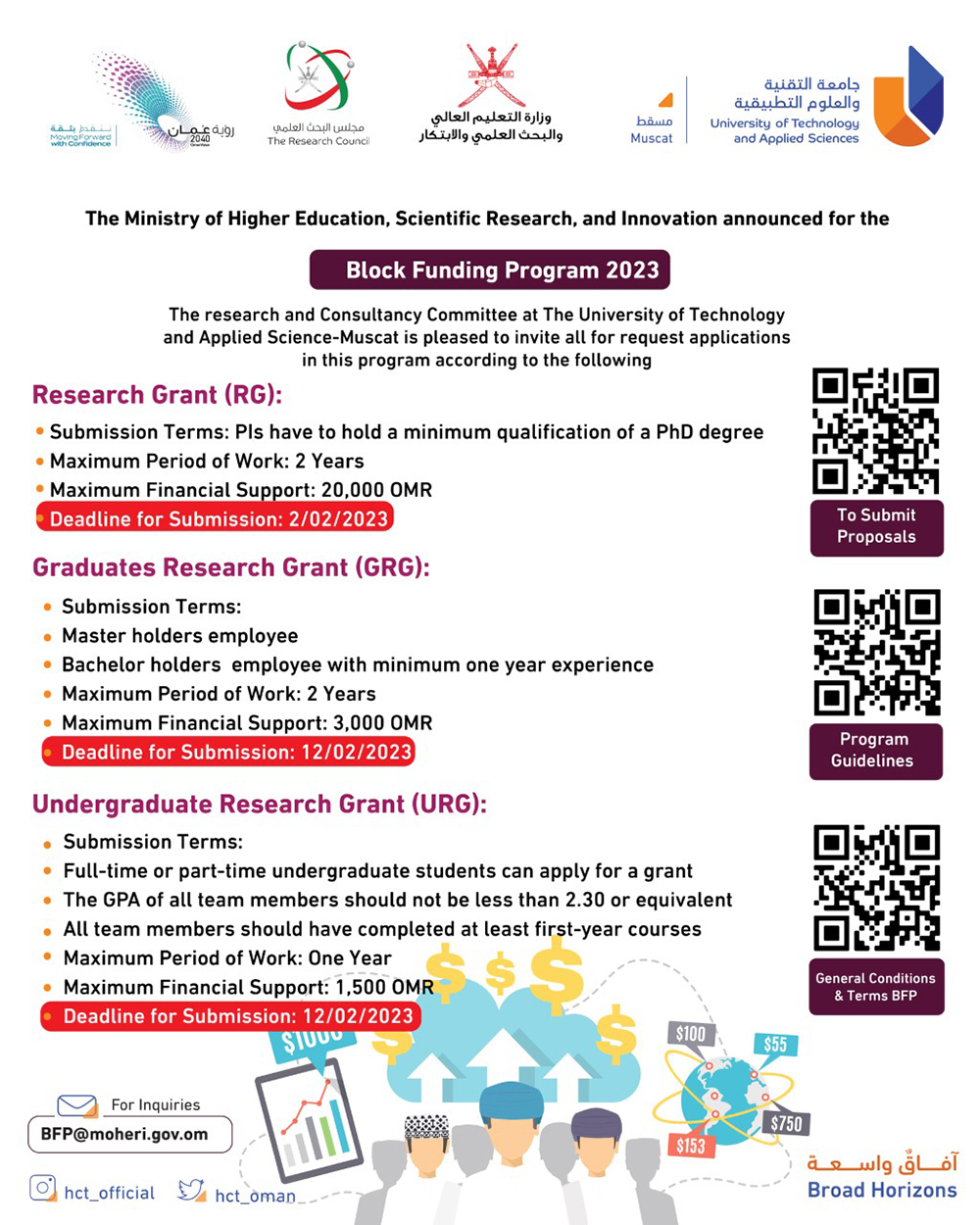 The Research and Consultancy Committee is Pleased to encourage all researchers to apply now for the "Block Funding Program"
