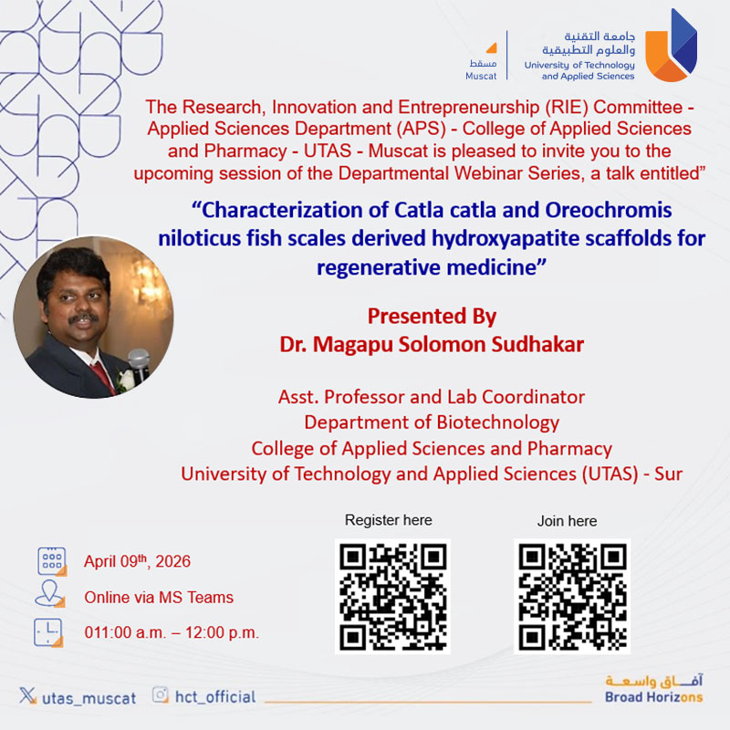 Tuesday, April 7, 2026 / Categories: Announcements, Applied Sciences Characterization of Catla catla and Oreochromis niloticus fish Scales derived hydroxyapatite scaffolds for regenerative medicine Previous Article From Pixels to Detection: A Practical Introduction to Computer Vision Next Article Transforming Classroom Learning through Peer Instruction Print 16