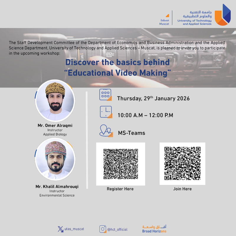 Tuesday, January 27, 2026 / Categories: Business Studies Discover the basics behind “Educational Video Making” Previous Article اعلان تخفيض 50 % من معهد البيان للتدريب Next Article APPEAL AGAINST FINAL EXAMINATION RESULTS of SEMESTER 1, 2025-2026 Print 18