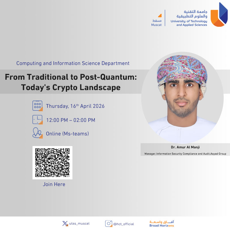 Sunday, April 12, 2026 / Categories: Announcements, Information Technology From Traditional to Post-Quantum: Today's Crypto Landscape Join Here Previous Article Cognitive Psychology and Logic: Understanding Human Thinking and Artificial Intelligence Next Article The 1st International Conference on Business Sustainability: Enhancing Oman’s Innovation and Investment Ecosystem ICBS26 Print 87