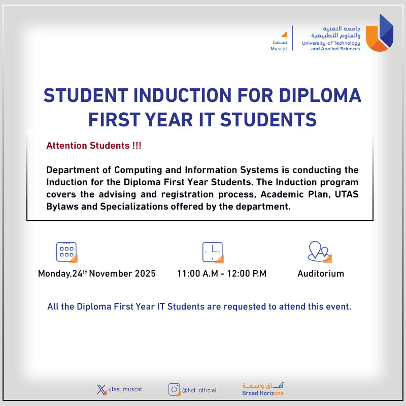 Thursday, November 13, 2025 / Categories: Announcements, Information Technology STUDENT INDUCTION FOR DIPLOMA FIRST YEAR IT STUDENTS Previous Article Innovation in Healthcare: Mobile and Online Applications Next Article Ejada System - Sustainable Development Print 28