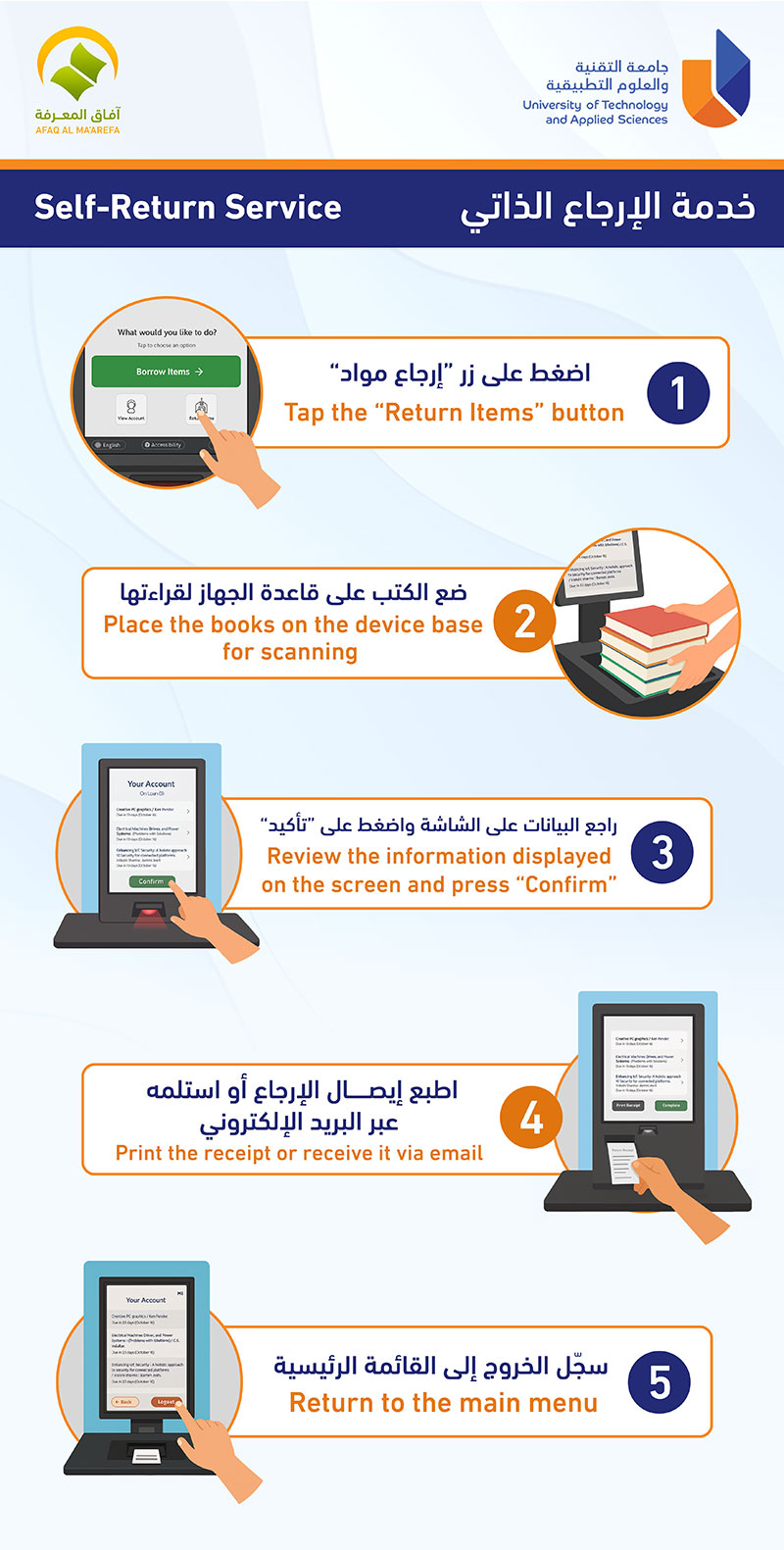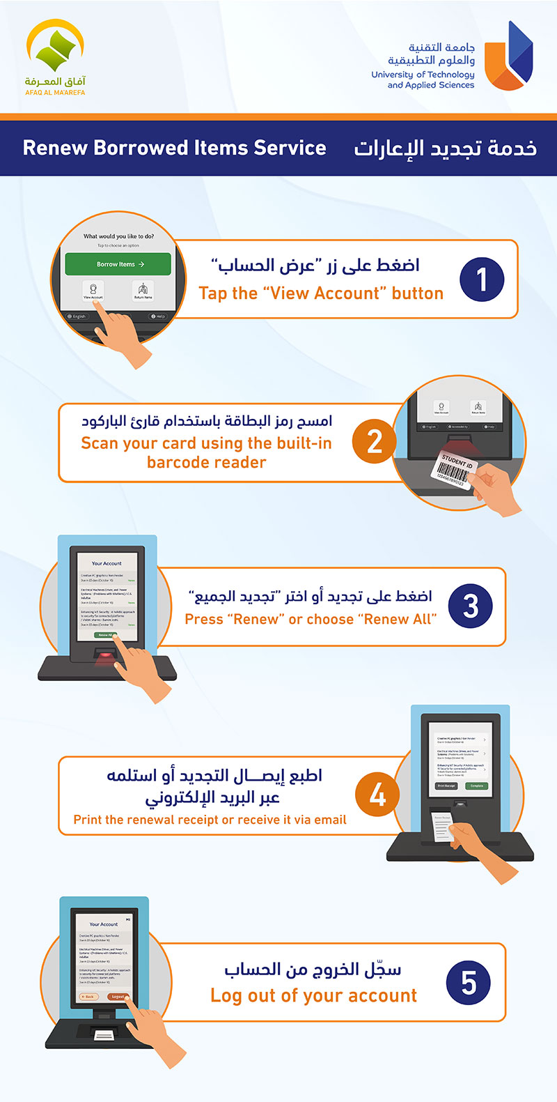 وفر وقتك وجهدك مع خدمة الإعارة و الإرجاع و التجديد الذاتية في المكتبة
