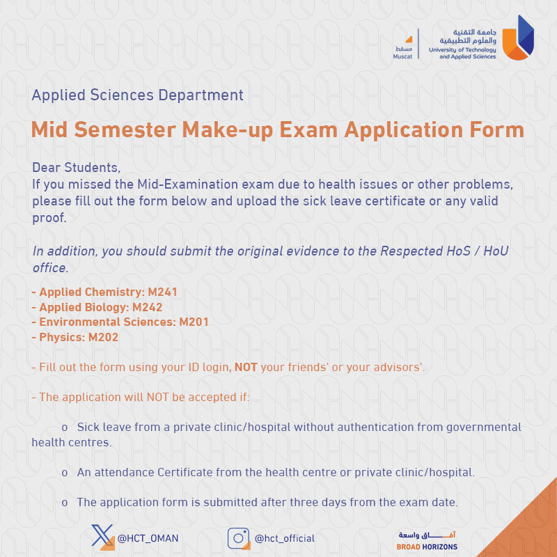 Applied Sciences: Mid Semester Make-up Exam Application Form