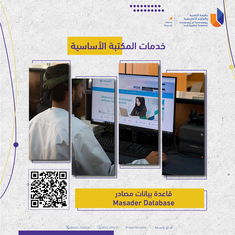 Tuesday, October 7, 2025 / Categories: Announcements, Educational Technology Center Masader Database https://www.masader.om/ Previous Article Fear of Rejection in Academia Next Article Student Induction for Diploma First Year Students Print 68