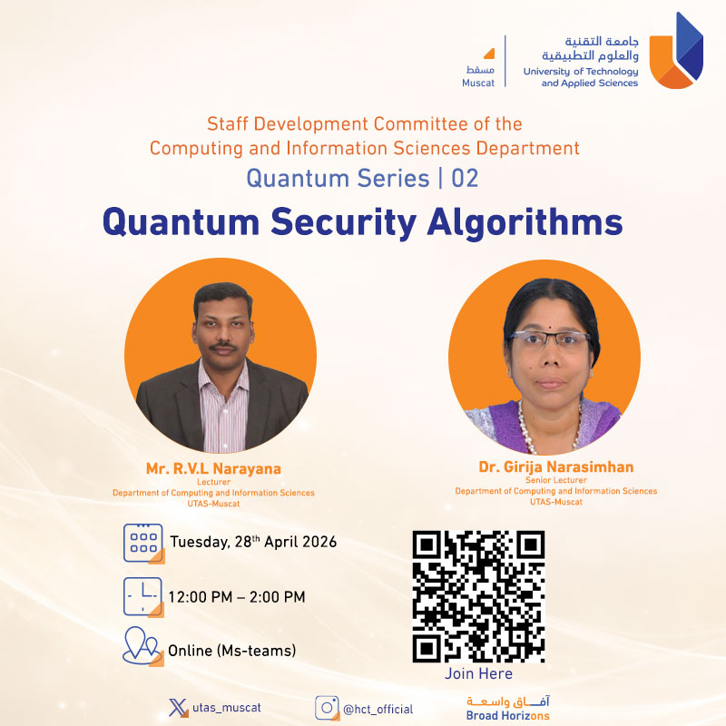 Monday, April 20, 2026 / Categories: Information Technology Quantum Series | 02 - Quantum Security Algorithms Previous Article Webinar Session for Cloud Computing Fundamentals Course Next Article Mid-Semester MAKEUP Exam Timetable - Semester 2 (2025-2026) Print 13