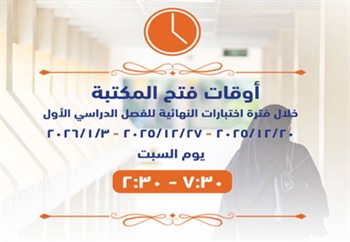 أوقات فتح المكتبة خلال إختبارات النهائية للفصل الدراسي الأول schedule Thursday, December 18, 2025 Educational Technology Center Read more
