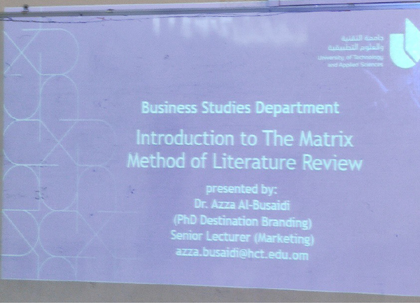The CEBA Muscat branch in coordination with the Research and Consultancy Committee organized sequential training programs on “Introduction to literature matrix review & The era between master’s and PhD”. The felicitators are Dr Azza Al Busaidi Lecturer of CEBA, Muscat Branch and Dr Essam AL Lawti, Lecturer of CEBA, Muscat Brach. The main theme of this training program is to enhance research knowledge among staff. The Venue, Date and Time of the workshop is on the 27thth of April, 10 AM to 12 PM at BS26.
