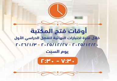 Thursday, December 18, 2025 / Categories: Announcements, Educational Technology Center أوقات فتح المكتبة خلال إختبارات النهائية للفصل الدراسي الأول Print 334