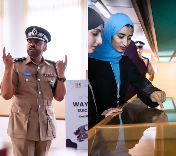 * اليوم الاول عن المسكرات و المواد الممنوعة والمؤثرات العقلية و قدمت شرطة عمان السلطانية محاضرة عن الممنوعات و كانت الفعاليه تحت عنوان ( طريقك الى الإنتحار)
