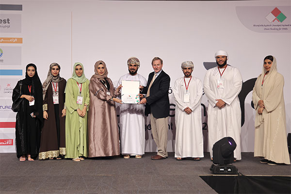 جانب من تكريم طلبة جامعة التقنية والعلوم التطبيقية بمسقط من قسم ريادة الأعمال والإبتكار في منتدى القيادة والأدراة الذي نظمته الأكاديمية العمانية للمؤسسات الصغيرة والمتوسطة ،تحت رعاية ايندا كيني رئيس الوزراء الإيرلندي السابق ، تم عقد المنتدى في مركز عمان للمعارض والمؤتمرات بتاريخ 21 يوينو 2023 .