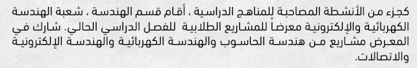 As part of the co-curricular activities, the Engineering Department, Electrical and Electronics Engineering section conducted its project exhibition for the semester. Projects from Computer engineering, Electrical engineering and Electronic & Communications engineering participated.