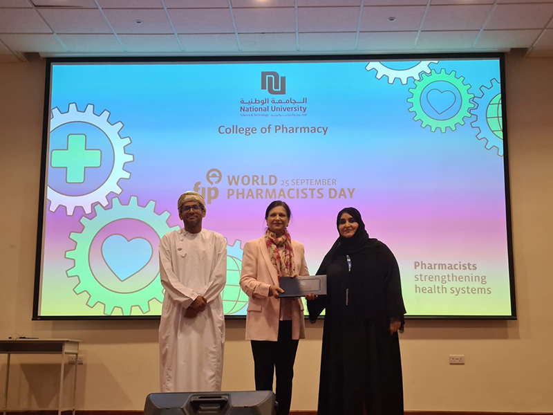 The National University of Science and Technology (NUST) hosted a celebration of World Pharmacist Day on October 1, 2024. The Dean of the Pharmacy College, Dr. Khalid Al-Baluchi, extended an invitation to the Pharmacy department at the University of Technology and Applied Sciences (UTAS) to participate. The event featured student exhibitions on various pharmacy-related topics, including the history of pharmacy, herbal remedies, cardiovascular health, and brain health. In addition, there was a poster competition and a student competition involving teams from NUST, UTAS, and Nizwa University. The UTAS team emerged victorious in the competition, securing first place among the participating teams. Additionally, two UTAS teams claimed the top spots in the exhibition competition, securing first and second place for their outstanding displays.