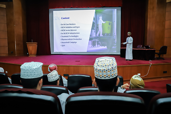 In an informative workshop titled "Medical Waste Management in Oman," held on Thursday, December 21, 2023, from 10:00 AM to 12:00 PM, Mr. Faisal Hamed AL Ghammari and Mr. Tariq Talib AL Khanbashi took the lead as facilitators. Both individuals hold key positions as Sr. Specialist Health Care Waste Commercialization and Operation Engineer Health Care Waste Management, respectively, at the be’ah company. The session was designed to provide valuable insights into the comprehensive field of medical waste management. The workshop covered significant aspects, commencing with a comprehensive overview of be'ah's core business, including hazardous and industrial waste, healthcare waste, and various other waste streams. The historical context of the healthcare waste sector takeover and the subsequent expansions were highlighted, showcasing the dedication of be’ah in effectively managing healthcare waste.