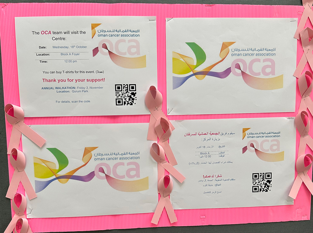 She went on to talk about the Annual Walkathon, being held on 3 November this year, at Qurum Park. The main aim of this event is to raise funds for the OCA in its pursuit to educate everyone in Oman about cancer. T-shirts, caps, cancer pins and mugs are sold to promote both the OCA and the Walkathon. The walkathon will start at 16:30 and participants will walk one full loop of the park. Fun activities and Raffle Draws are held after the walk.