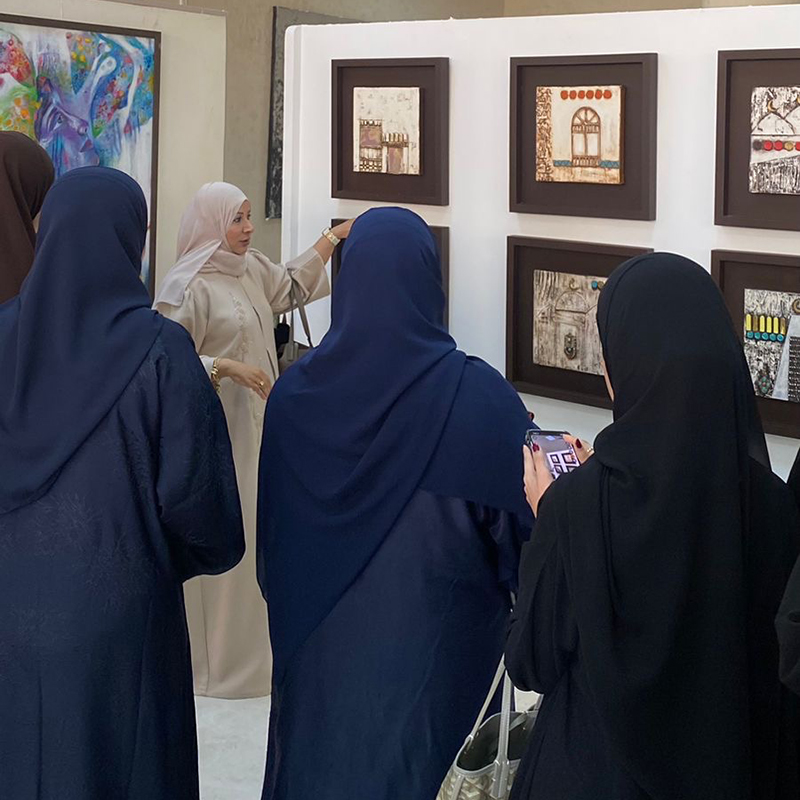 Students from the Department of Design Design went yesterday to the Scientific College of Design as part of a collaboration between the Sultanate's colleges and institutions to support a variety of creative arts. We had fun introducing the meeting by going over how to use water color and wood drawing techniques, followed by how to recognize various fabric types and coloring it . Amal Al-Jamali provided the students with specialized supervision about her career in design and fashion as well as how to handle a small-scale fashion business in Oman. Lastly, by examining her own artwork, visual artist Tahera Fida provided a condensed explanation of the vibrant call in art.