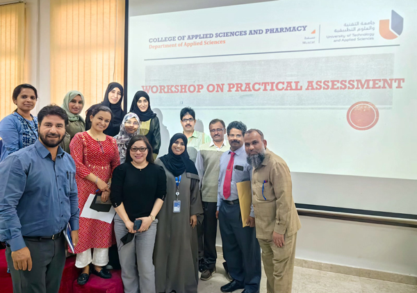 Program Committee of Applied Chemistry Section of the Department of Applied Sciences held a workshop on designing practical assessments for academic staff. The event was led by Dr. Wafa Al-Rawahi, the Section Head, and Dr. Widad Al-Rawahi, the coordinator. The workshop aimed to provide guidance on best practices for designing practical assessments that evaluate students' skills and knowledge effectively. Attendees were introduced to various modes of implementing practical assessments and ways to make it challenging, meaningful, and stress-free. The workshop was well-received, with attendees actively applying the best practices shared during the session in designing practical assessments for the current semester. They were keen to receive feedback and clarification from facilitators.