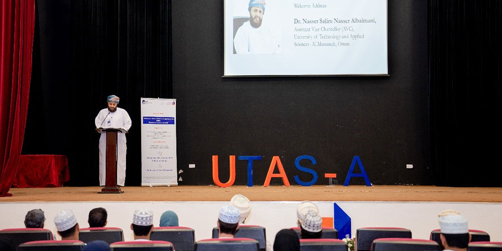 Mr. Ahmed Al Yamani, VP of Technology, Frontier Technology LLC, Al Khuwair, was the Guest of Honor who explained the Blockchain Technology, and Ms. Nooriya Al Balushi, Technical Innovation Specialist, Central Bank of Oman, also shared her thoughts on fintech services in bank and blockchain technology. Representatives from various banks such as Sohar International, Bank Muscat, Ahli Bank, and different SMEs from logistics and small businesses attended the symposium. The faculty from UTAS branches also attended the symposium.