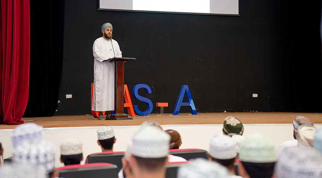A video presentation then introduced the university, its colleges, its vision, and the key facilities in Al Musannah branch. The regulations and laws in force at the university were explained, particularly those related to the Preparatory Studies Center, including the placement exams, attendance, and the evaluation system. Students were also introduced to the electronic systems and student services offered by the university. The importance of entrepreneurship and innovation was also emphasized.