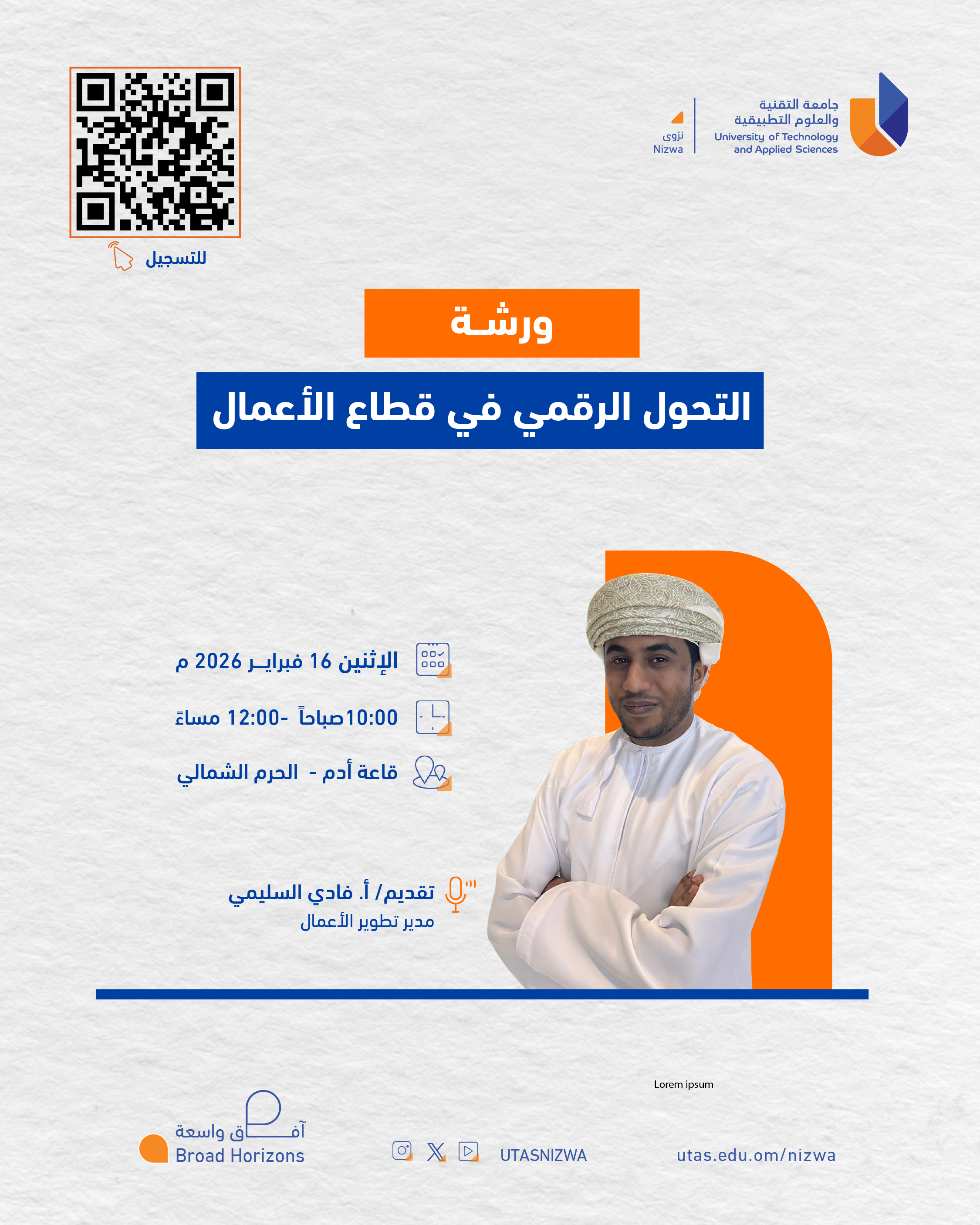 Event date: 2/16/2026 10:00 AM - 12:00 PM Export event Tuesday, February 10, 2026 / Categories: Events التحول الرقمي في قطاع الاعمال Print 10
