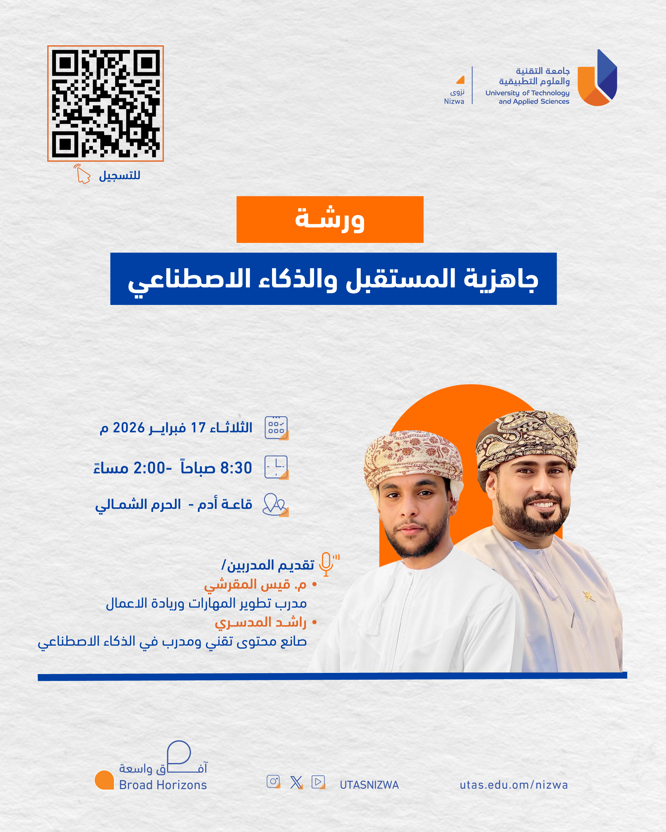 Event date: 2/17/2026 8:30 AM - 2:00 PM Export event Tuesday, February 10, 2026 / Categories: Events جاهزية المستقبل والذكاء الاصطناعي Print 7
