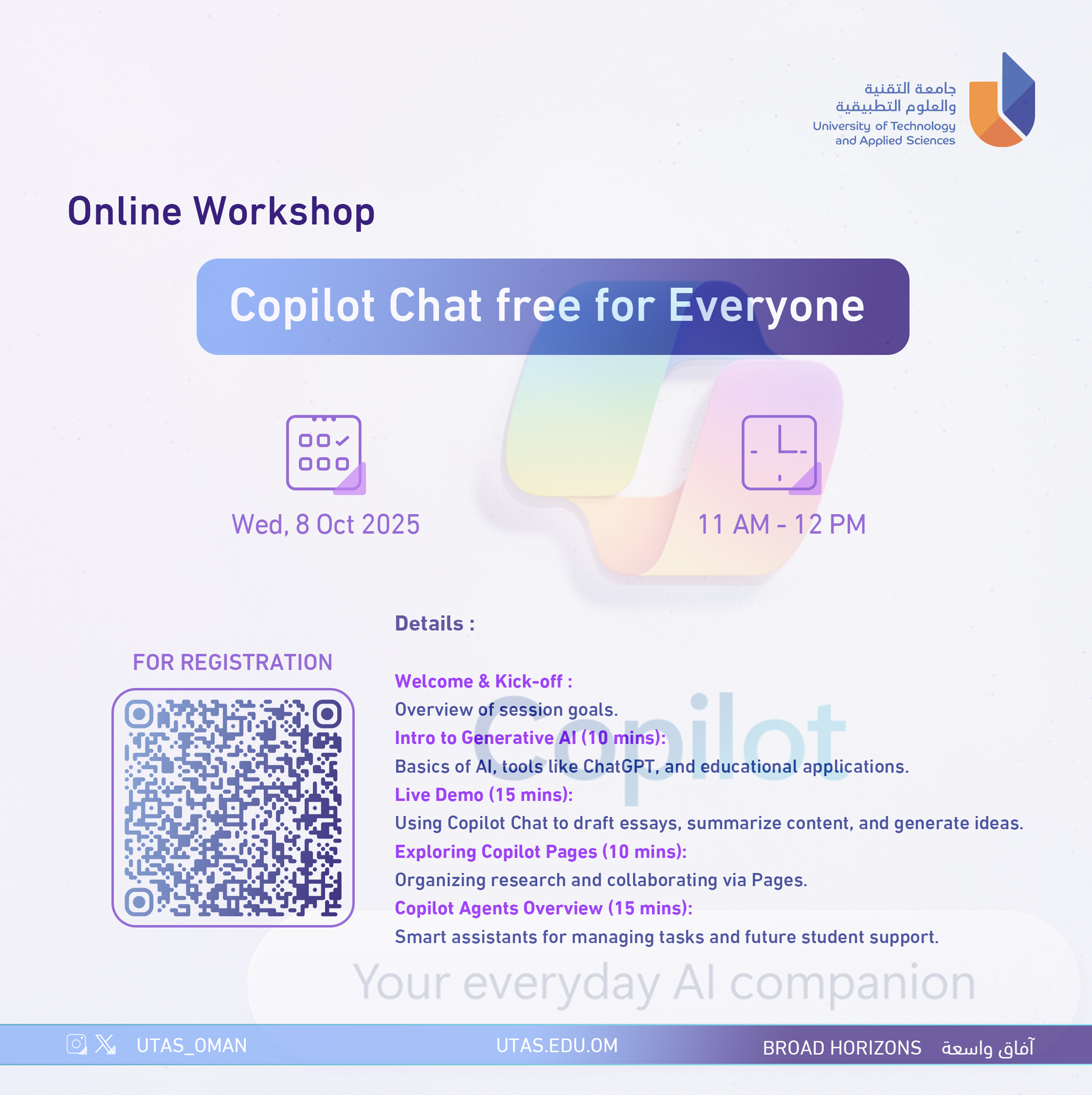 Event date: 10/8/2025 11:00 AM - 12:00 PM Export event Monday, October 6, 2025 / Categories: Events Copilot Chat free for Everyone For Registration Print 16