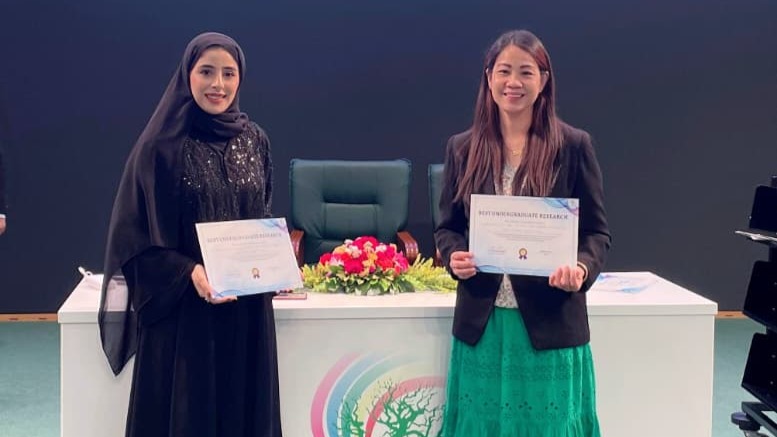At the Dhofar University 12th Annual Research Day held on 2 April 2026, a team from CEBA Nizwa earned first place for Best Undergraduate Research, highlighting academic excellence and innovation in emerging fields. Dr. Jeannette Ong Ee-Lyn and HR Bachelor student, Ms. Reem Said Abdallah Al Abdali received the award for their research paper titled “Tourists’ Adoption of AI Itinerary Planners: From Human Factor Perspectives,” which stood out among numerous student research entries.
