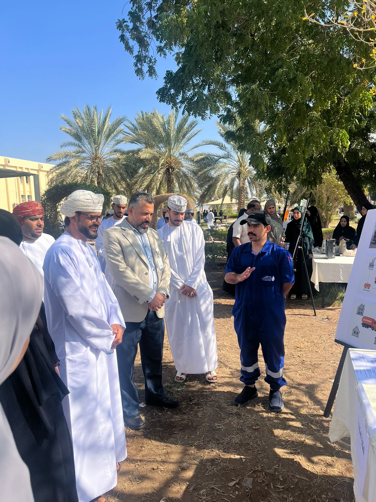 The exhibition attracted representatives from various government, private, and academic institutions. Notable attendees included 25 female students from the University of Nizwa, staff members from the Oman Chamber of Commerce, two representatives from the Ministry of Health (the Director of the Planning Department and a Section Head), the General Manager of Bawariq International Investment Company, four representatives from the Directorate General of Education—including an Olympiad Innovation Specialist—and four representatives from the Environmental Department of Al Dakhiliyah Governorate.