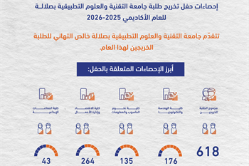 إحصاءات حفل تخريج طلبة جامعة التقنية والعلوم التطبيقية بصلالة للعام الأكاديمي 2025–2026 schedule Sunday, December 14, 2025 General Read more