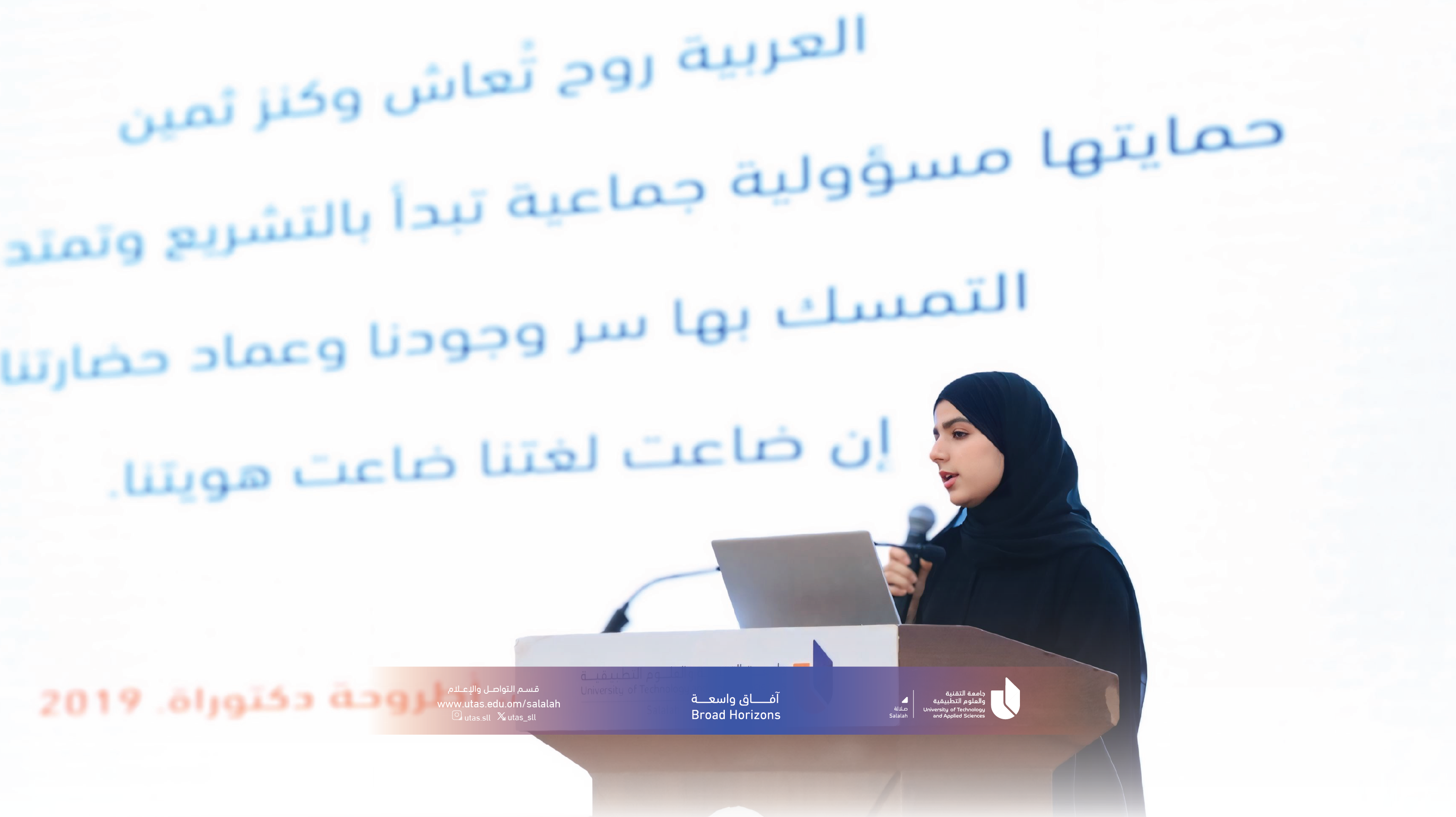 أُقيمت يوم الخميس 18 ديسمبر 2025 فعالية اليوم العالمي للغة العربية تحت شعار «مسارات مبتكرة للغة العربية: سياسات وممارسات لمستقبل لغوي أكثر شمولاً»، تحت رعاية الدكتور أحمد بن علي الشحري، مساعد رئيس الجامعة بفرع صلالة.