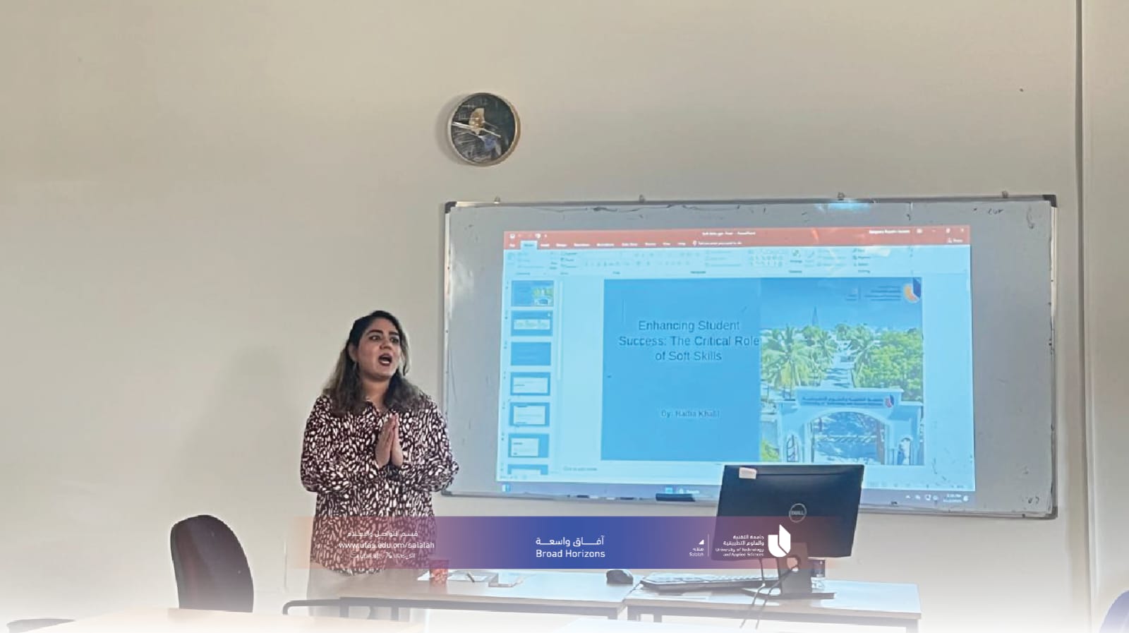 نظّم قسم الاتصال الجماهيري بجامعة التقنية والعلوم التطبيقية بصلالة سلسلة من الورش التدريبية لتطوير مهارات الطلبة الأكاديمية والشخصية، شملت ورشة "إدارة الوقت" للدكتورة سانجيتا تريباثي، وورشة "مهارات الدراسة الفعّالة" للأستاذة منى الشحرية، وورشة "المهارات الشخصية (Soft Skills)" للأستاذة هادية خليل، بهدف تعزيز قدرات الطلبة في التخطيط، وتنظيم الدراسة، والتواصل المهني الفعّال.