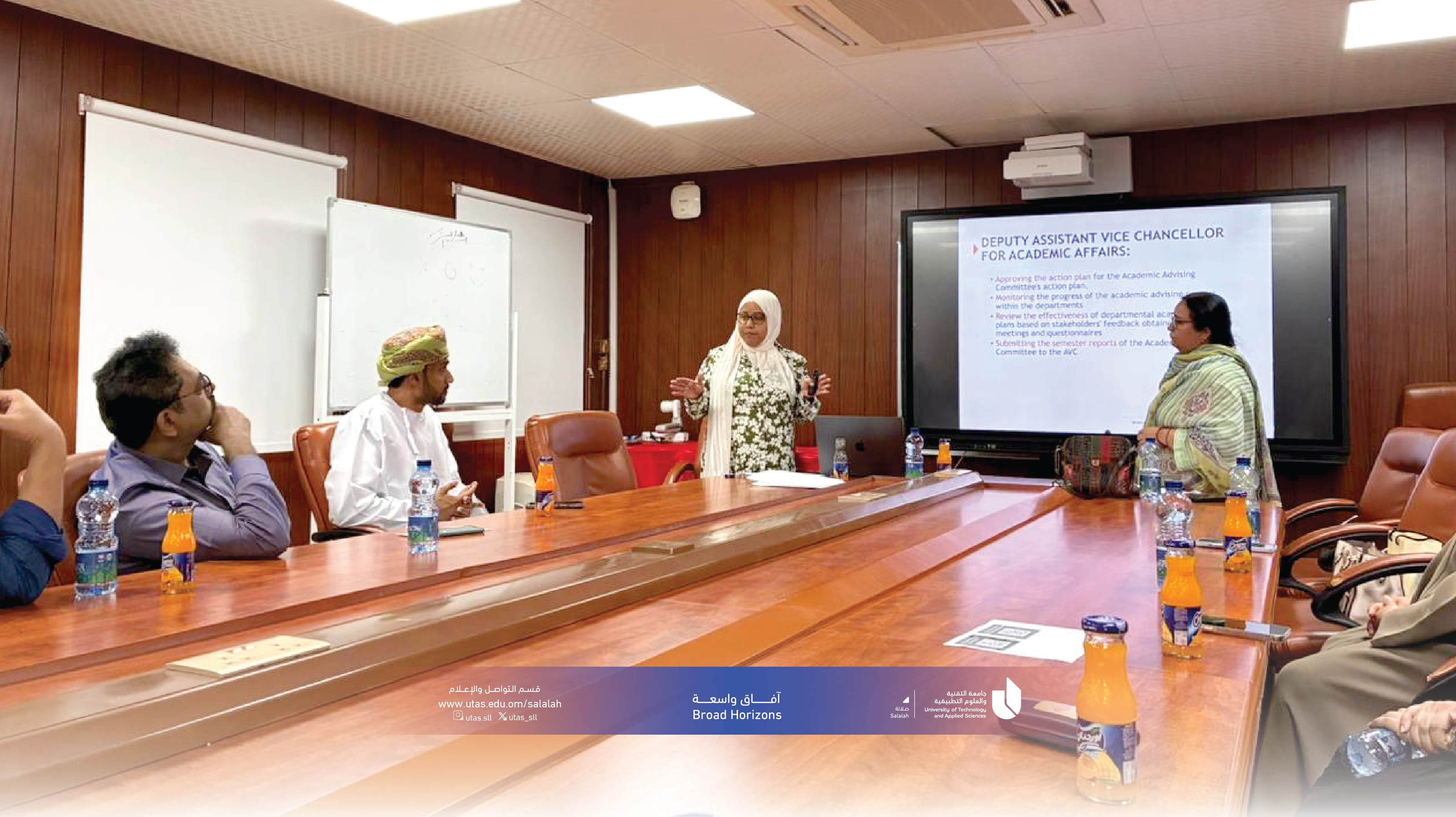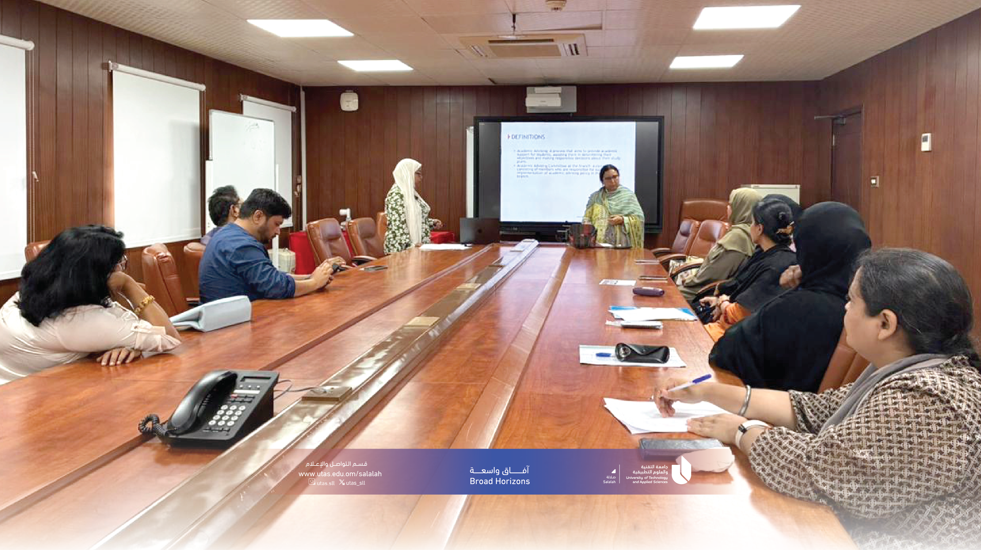 نظّم قسم الاتصال الجماهيري بجامعة التقنية والعلوم التطبيقية بصلالة جلسة توعوية لأعضاء هيئة التدريس حول سياسة الإرشاد الأكاديمي، قدمتها د. نوال صلاح الدين ود. فاندانا جواتيميري.