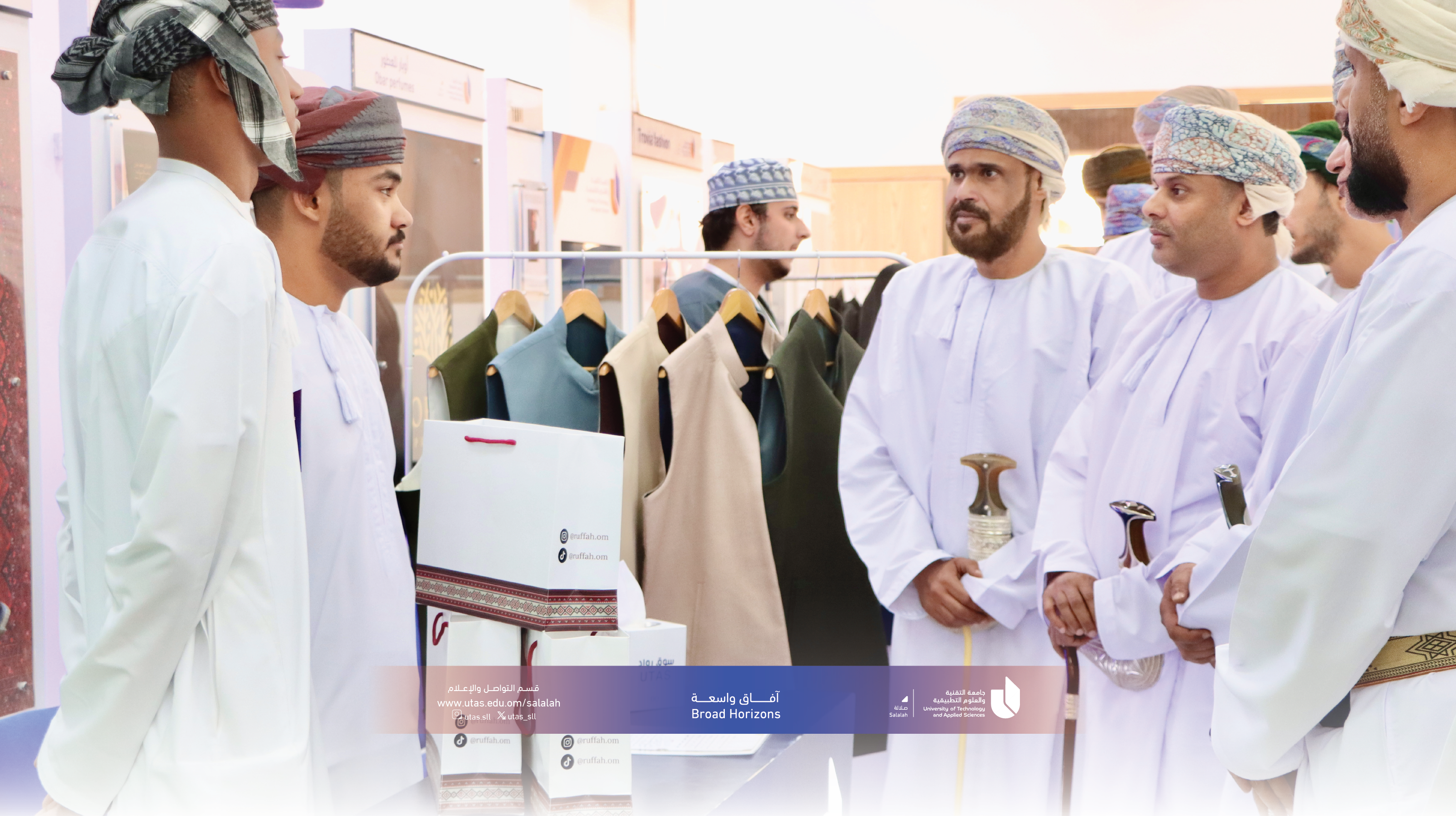 افتُتحت اليوم بجامعة التقنية والعلوم التطبيقية بصلالة فعاليات سوق روّاد يوتاس (النسخة الثانية)، تحت رعاية الشيخ نايف بن حامد بن عامر فاضل، رئيس مجلس إدارة غرفة تجارة وصناعة عُمان بمحافظة ظفار، وبحضور الدكتور أحمد بن علي الشحري، مساعد رئيس الجامعة بصلالة، وعددٍ من مديري الجهات الحكومية والخاصة.