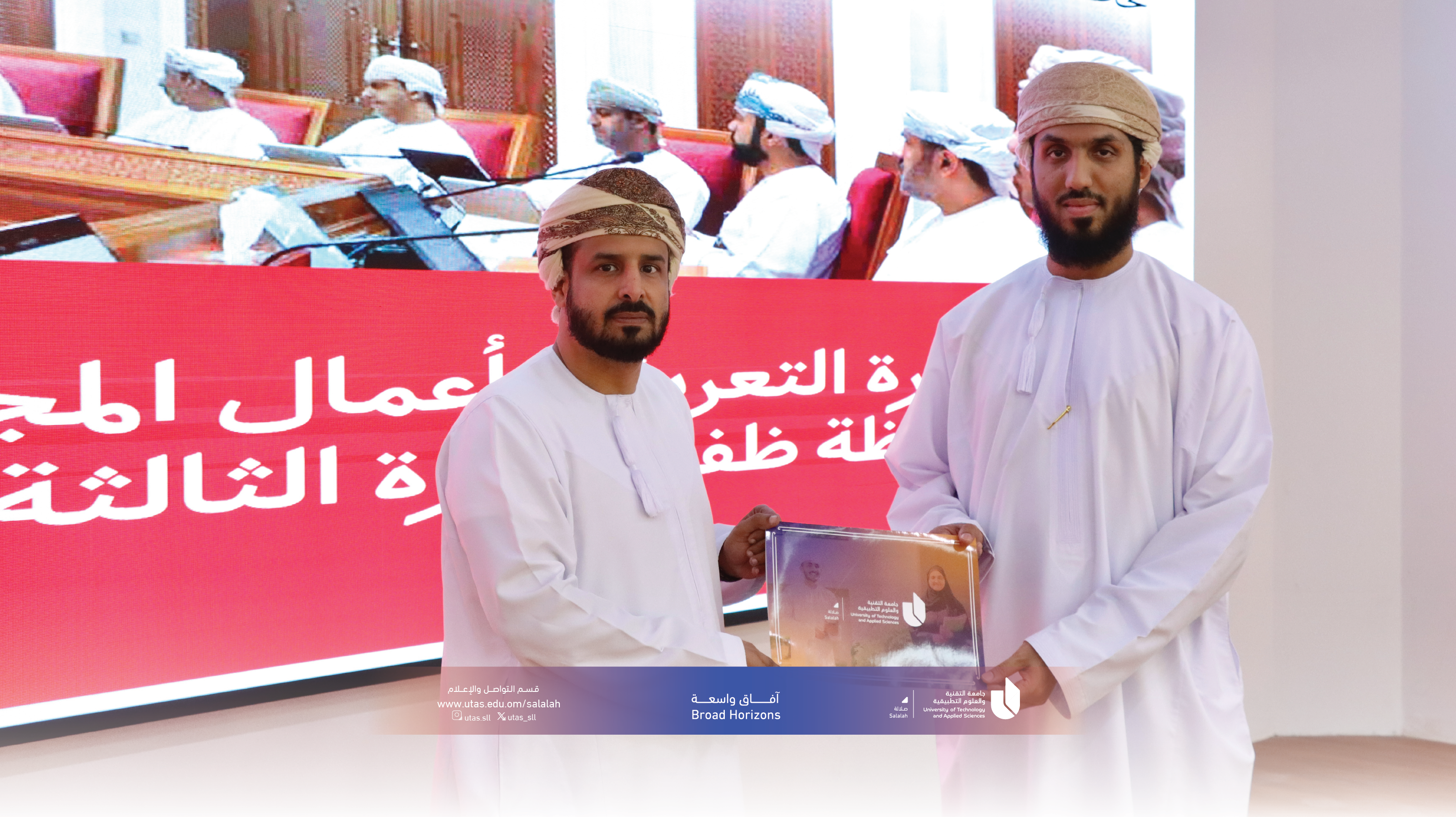 استضافت جامعة التقنية والعلوم التطبيقية بصلالة لقاءً تعريفيًا حول المجلس البلدي، وذلك في إطار التعاون والتنسيق بين الجامعة والمجلس البلدي لمحافظة ظفار. وقد نُظّم اللقاء يوم الثلاثاء 2 ديسمبر 2025م بهدف رفع مستوى الوعي المجتمعي لدى الطلبة حول منظومة عمل المجلس البلدي وأبرز اختصاصاته.