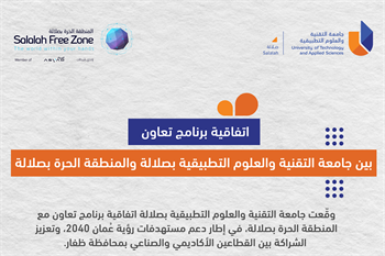اتفاقية برنامج تعاون بين جامعة التقنية والعلوم التطبيقية بصلالة والمنطقة الحرة بصلالة schedule Wednesday, January 7, 2026 General Read more