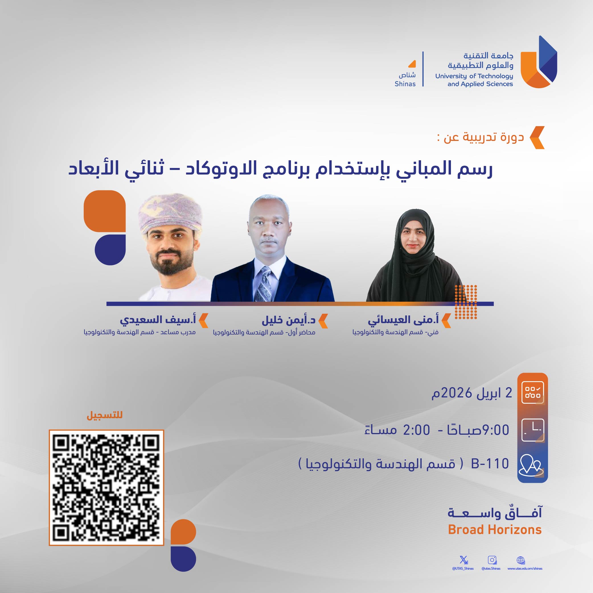 Sunday, March 8, 2026 / Categories: Announcements, Engineering دورة تدريبية عن : رسم المباني بإستخدام برنامج الاوتوكاد - ثنائي الأبعاد Previous Article Training on Structural Analysis and Design Using Autodesk Robot Software Next Article Planning and Scheduling a construction project using MS Projects Software Print 15 Rate this article: No rating